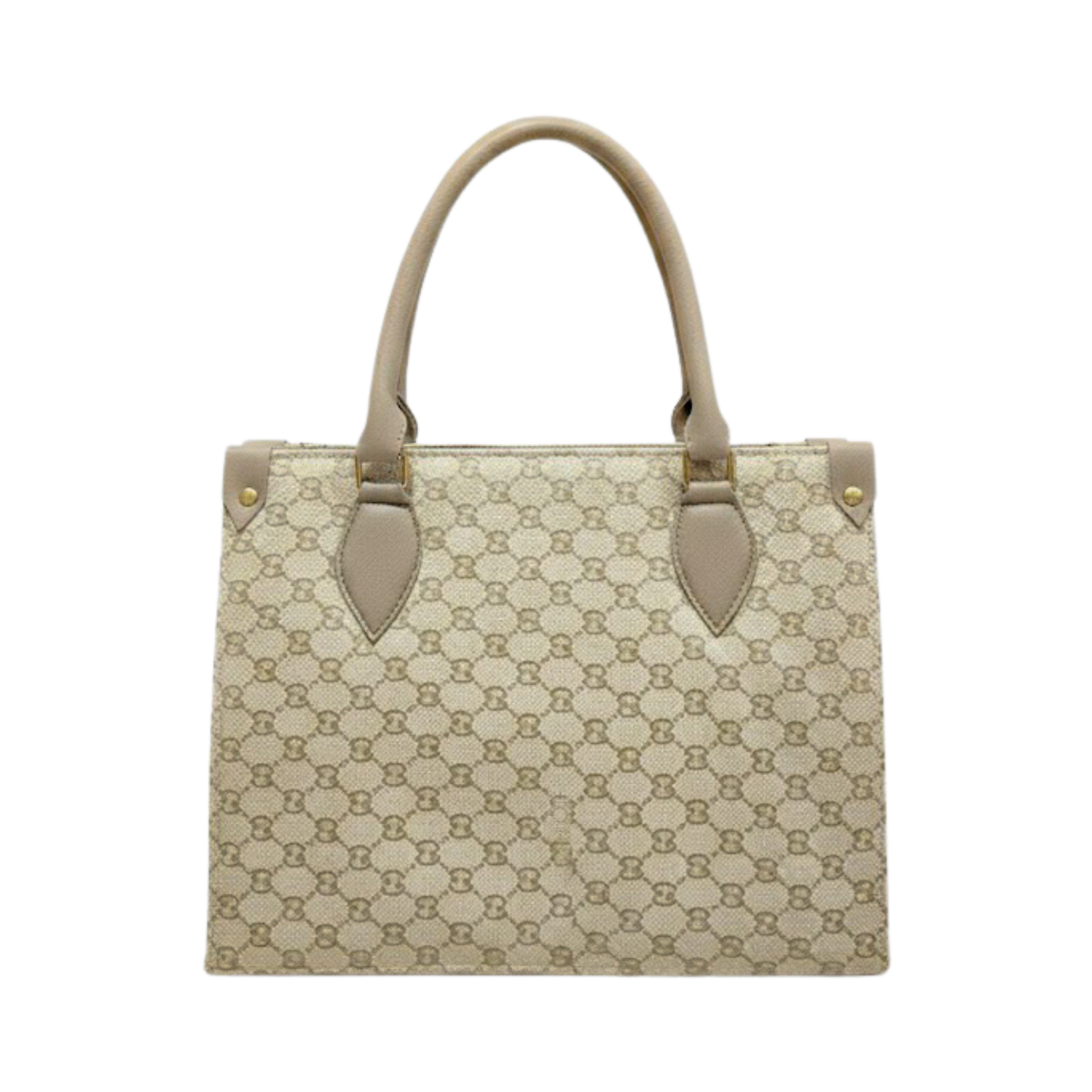 A timeless tote bag featuring an all-over monogram pattern in elegant beige tones.